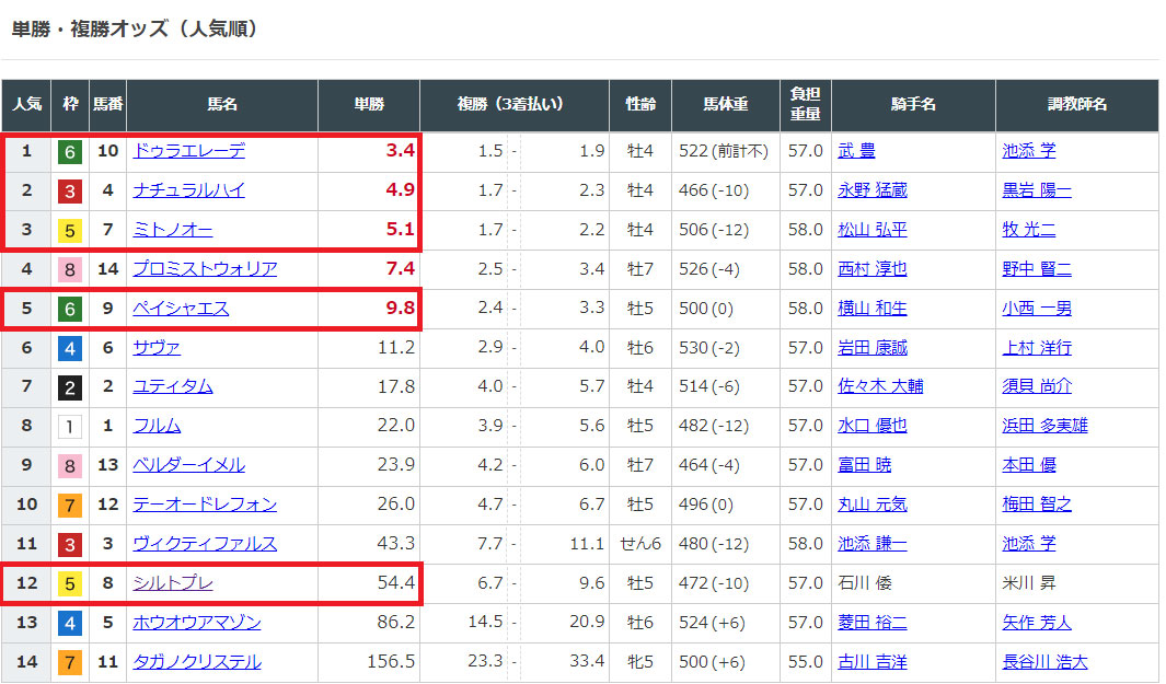 予想は馬連かワイドの4頭ボックスでそれぞれ6点の予想になります。