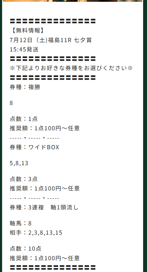 少なくともこのサイトは的中ほぼしないですよ。 なんか自分の参加した情報だけ外れていますし。 クソったれです。