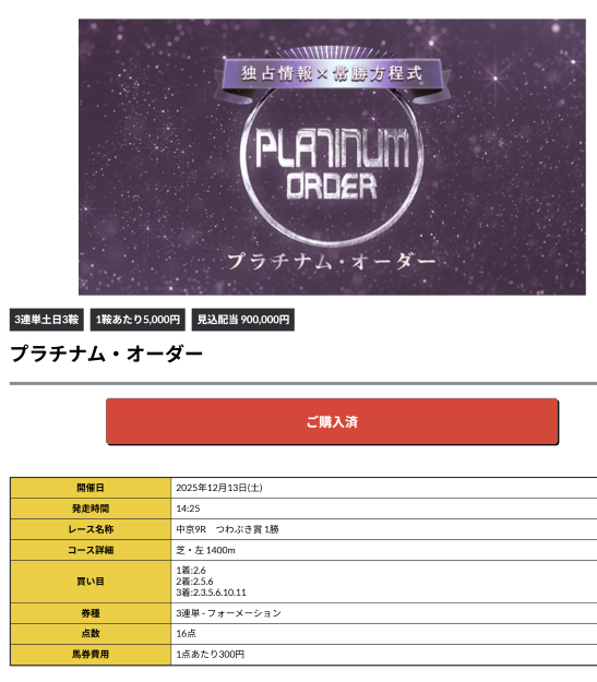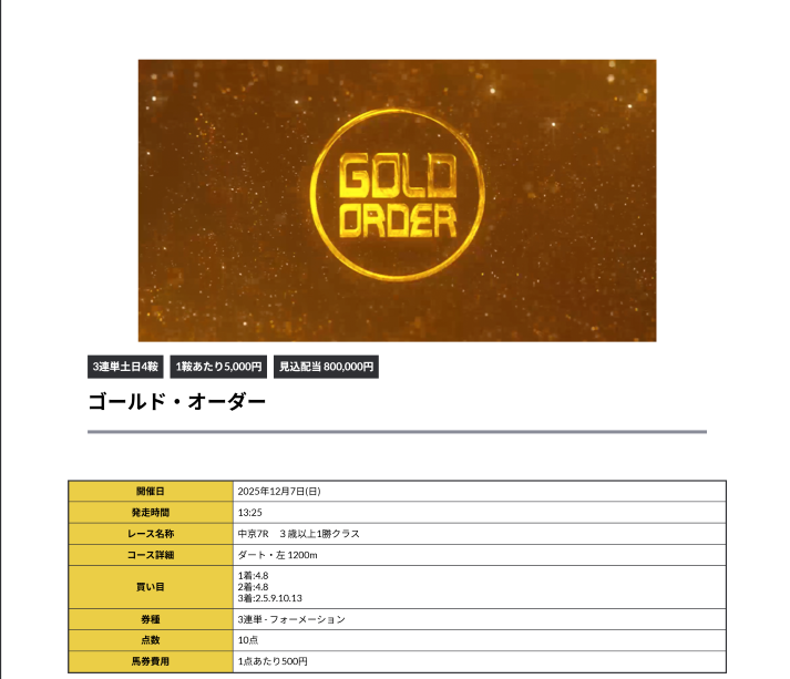 ここんとこ調子良さそうな競馬予想だったから使って良かったです、前回も10万越えだったような?!