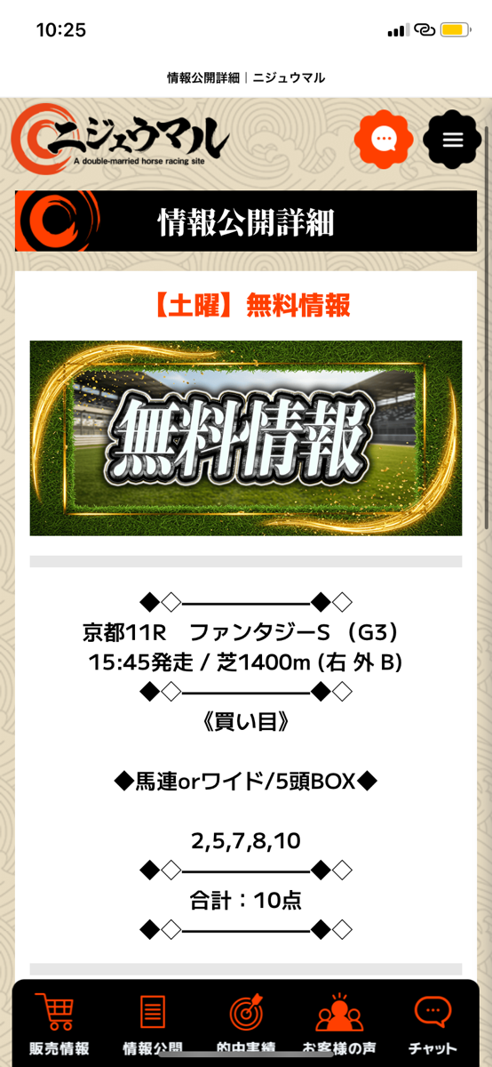 先週ローズステークス当たってたから、まずは無料情報から初見利用してオールカマー的中!