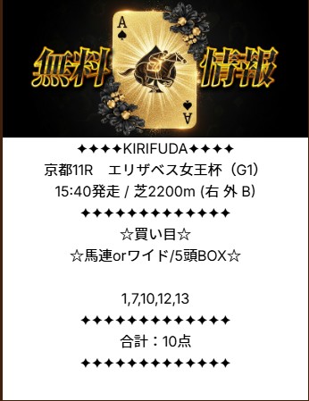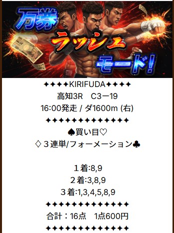 約束された万馬券の買い目が届く!