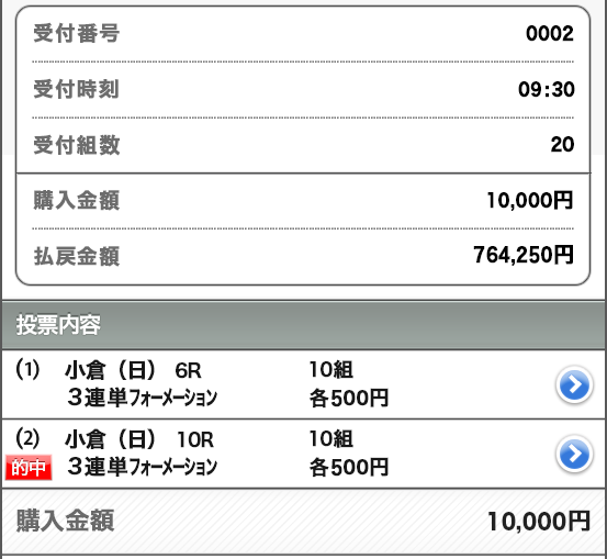 G1裏開催の小倉、高配当当ててもらいましたわ。 G1はガチガチだったし、こっちも買っておいてよかった。 5400円の馬券代、点数18点で1475850円的中。 気になるサイトではあったから1度は使ってみたいと思っていたけど使って正解でした。