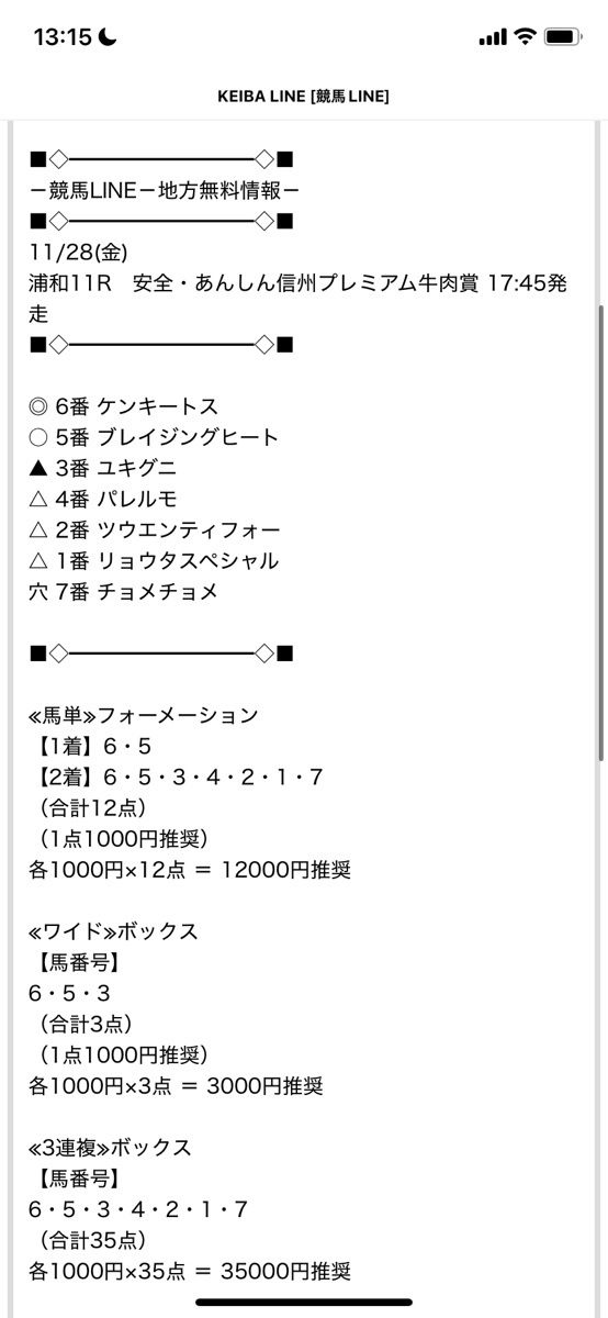 8/20(水)浦和11レースの無料情報で万馬券とれました!